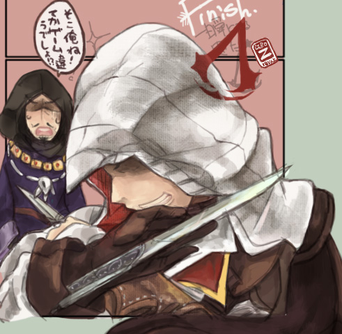 あ、本日は思いつきでガリガリかいたエツィオさんですvv 基本フードで目もと見えないんですが、中身はイケメン貴族男子ですぜ☆彡あ、企画中の絵の中に描いたので、周りは気にしないでください^^;