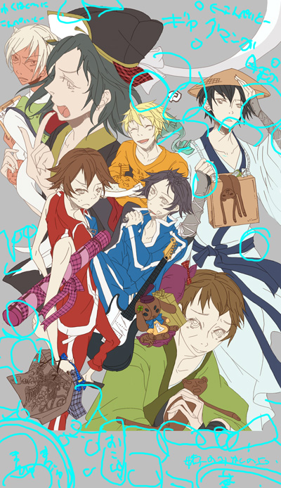 あ、これがその描き途中ですが集合絵のラフ。まだ若干名足りないのですが、大体こんな感じになると思います。場所はこれからまた変わると思いますが・・・