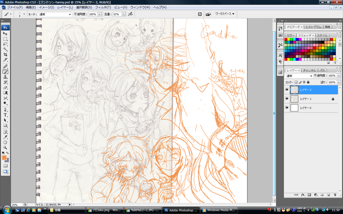 で、その説明を見つつなんとか一枚描いてみたんですが・・・終わらない!いつも以上に時間がかかる;成れてないせいもあるんでしょうけど、あまに時間がかかるんでもう挫折したくなってきそうです(苦笑)