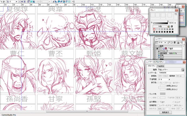 三国志と言えば、今頑張ってるもの!三国無双キャラを描いてみよう的な素敵なものを発見しまして、今もくもく下書き中。キャラの3分の1は描いたことない子でしかもおっさんばっかりで早速値を上げそうなんですが、なんとか魏と呉が下書きだけオワター!