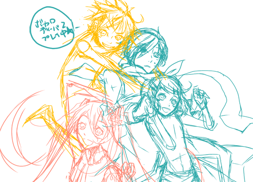 最後に。折角ゲ―ムもでたしでミクさんたちの下絵UP。ほとんど初描き同然;;